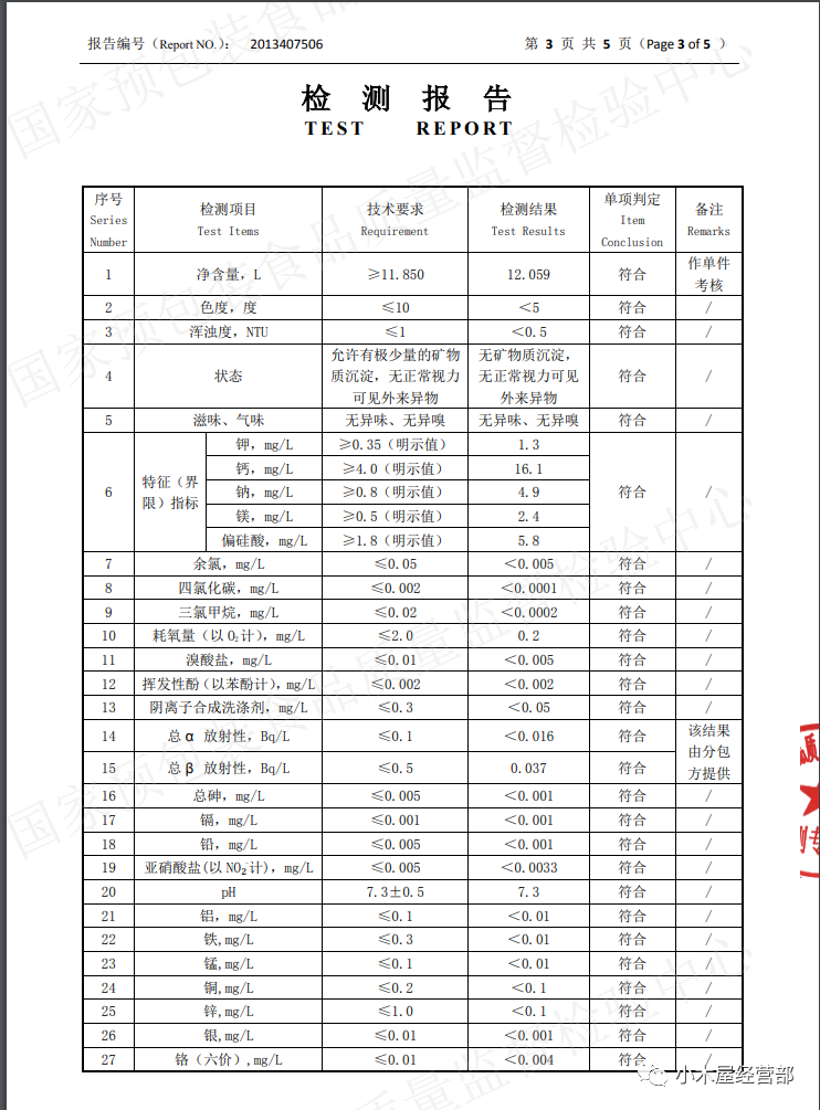 农夫山泉检测报告:
