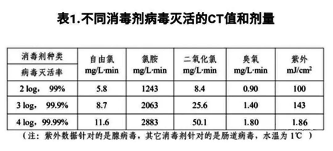 针对2019年底在武汉爆发的新冠状病毒,2020年2月11日住房和城乡建设部特邀了供水领域专家针对饮用水厂在新冠疫情期间加强病毒去除与控制提出了运行管理建议,并建议饮用水厂使用臭氧+生物活性炭处理技术,消毒是病毒去除的关键环节。病毒的灭活效果主要取决于消毒剂的类型以及消毒工艺的CT值(表1)。在病毒灭活能力方面(参考肠道病毒的数据),臭氧最强,自由氯其次,二氧化氯次之,而氯胺很差,紫外线消毒对病毒的灭活效果与病毒种类密切相关。对采用氯胺消毒的水厂,应先用自由氯在清水池进行充分接触消毒,在出厂前加氨形成氯胺。水厂应加强对管网及末梢余氯的检测,保证管网中的余氯量,有利于保证自来水的生物安全性。臭氧对病毒的灭活效果最好,建议适当增加臭氧投加量,可为病毒的强化去除增加一级屏障。