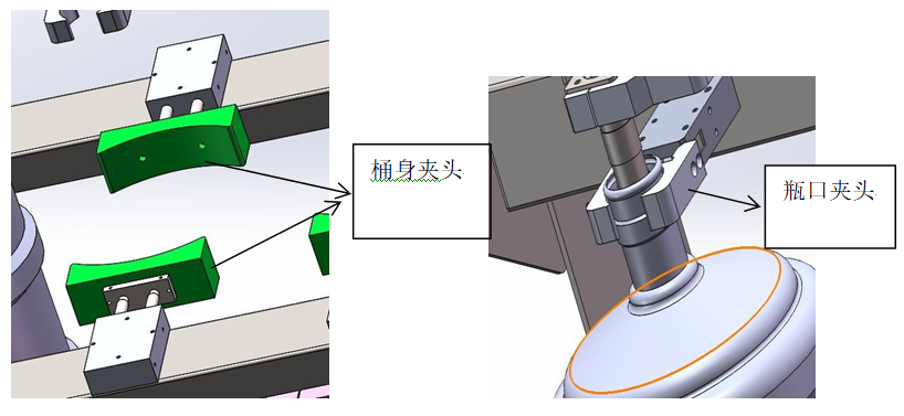 整个设备可以根据产能配备 1-5 个嗅味检测棒,每个桶的定位都配有双重定位:桶身定位,桶口定位,最大程度保障了定位精度: