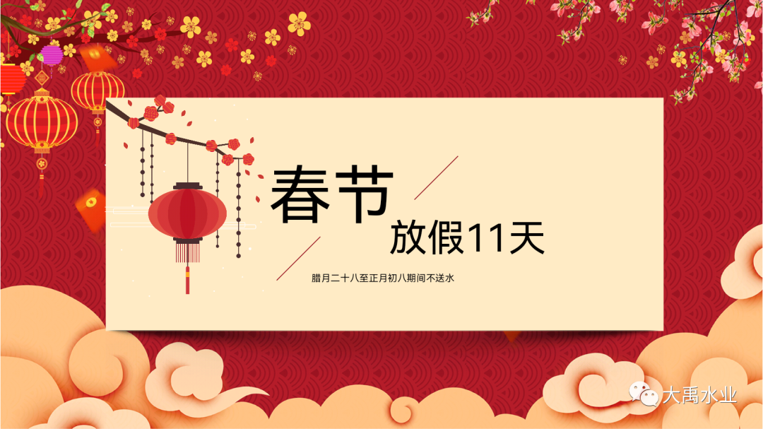 1、春节前夕客户囤水量大且比较集中,会导致配送时间较长,请大家耐心等待;