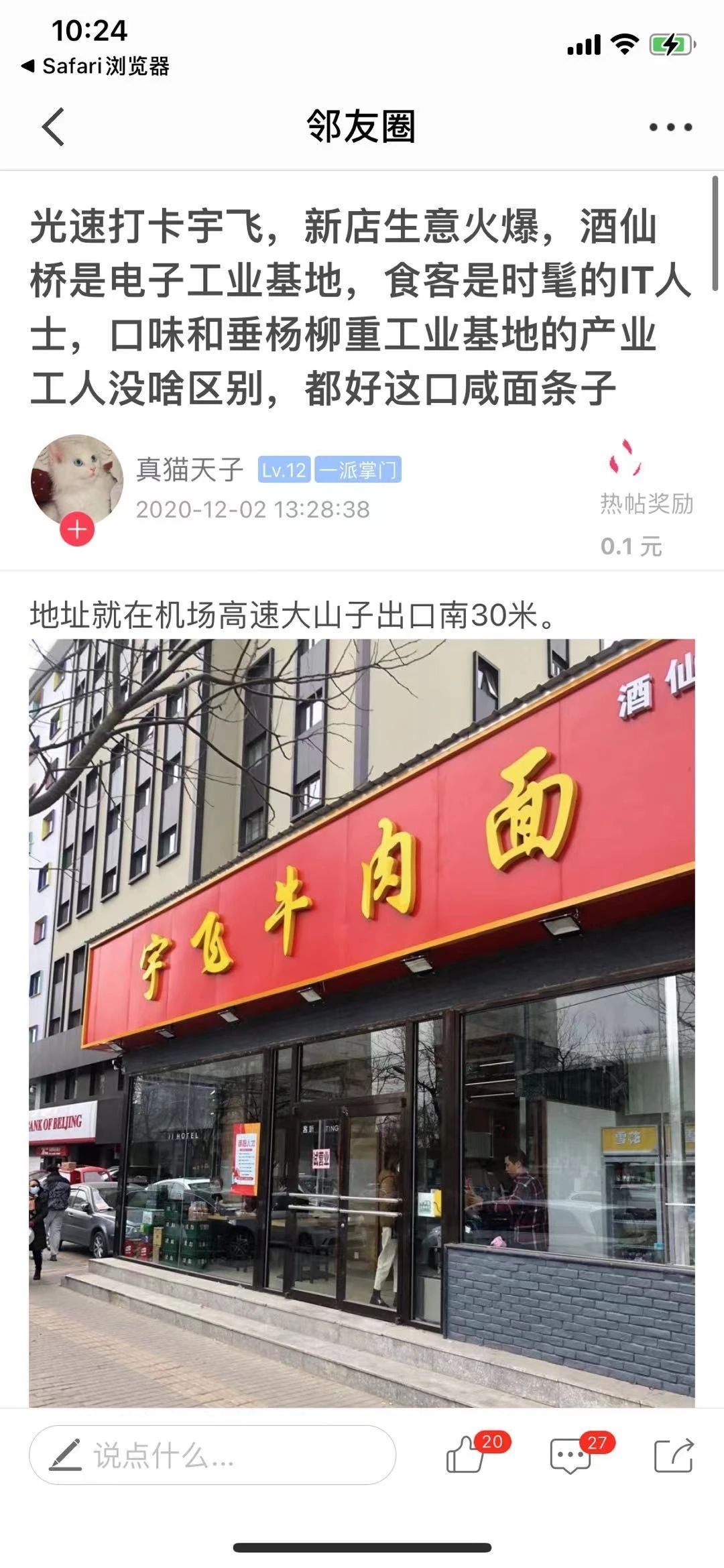 一、北京宇飞正红餐饮管理中心(宇飞牛肉面垂杨柳店)