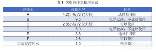 表1 饮用纯净水使用建议