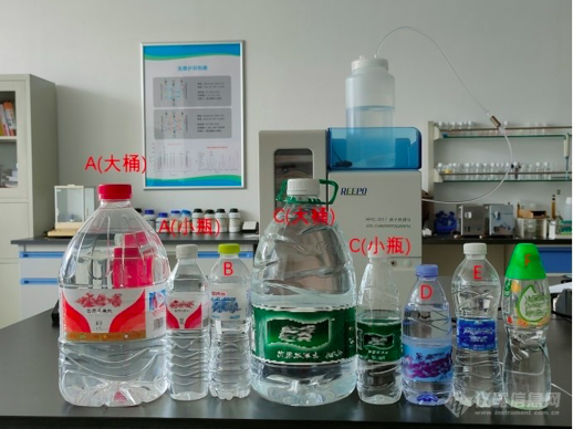 图1 市售6种饮用纯净水,用ABCDEF表示