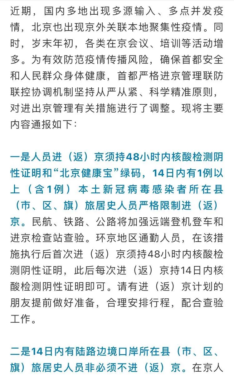 最新进出京政策来了!进(返)京须持48小时内核酸检测阴性证明,这些人员严格限制进京