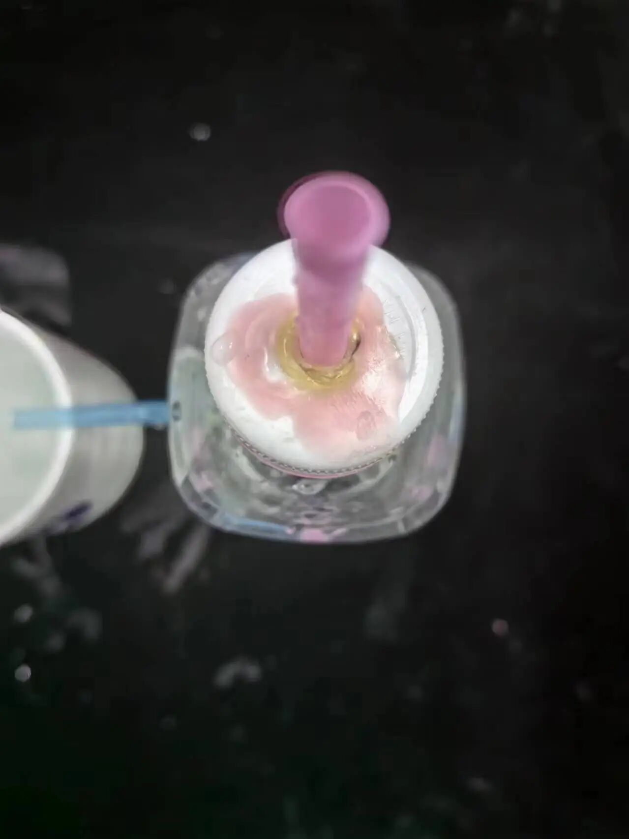检查装置气密性,如果密封良好的话,向瓶中加满水,一侧的吸管不会漏水。如果热熔胶太硬不方便,也可以用软的不干胶、蜡油乃至嚼过的口香糖等辅助密封哦~