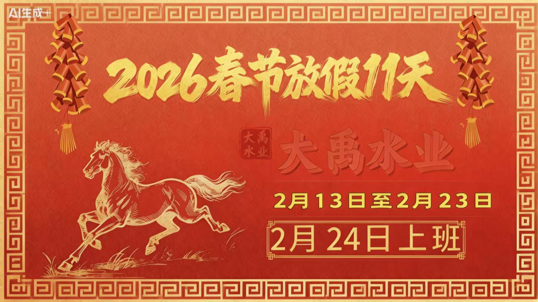 大禹水业2026年春节放假11天 大禹水业 2026-01-16 15:14:48 0 93 大禹水业春节放假11天,2026年2月13日至2月23日。2月24日(正月初八)上班。放假期间不提供送水服务如需用水,请提前备存热门文章热评文章1桶装水一般是多... 大禹水业春节放假11天,2026年2月13日至2月23日。2月24日(正月初八)上班。放假期间不提供送水服务如需用水,请提前备存热门文章热评文章1桶装水一般是多少升的2益生泉纯净水18升桶装水3 玉泉山喜士矿泉水桶装水1国贸水站订水电话677647782望京送水公司647536873 玉泉山喜士矿泉水桶装水 分享到: 最后修改时间:2026-01-16 15:22:04 大禹水业2026新年回馈活动 上一篇 2026年01月08日 08:19 北京高考生报名学车有团报优惠吗?龙泉驾校降价500|团报更优惠 随机下篇 2023年06月05日 12:11 相关文章 大禹水业望京水站桶装水望京送水电话64753687 大禹水业抖音双12优惠来了 2025年国庆节放假8天 2025年大禹水业劳动节放假5天 大禹水业属于国企还是私企 大禹水业2025年2月5日开始配送桶装水 发表评论 评论列表 暂无评论